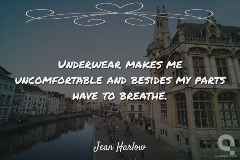 Underwear makes me uncomfortable and besides my parts have to breathe. Jean Harlow