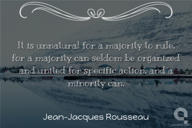 It is unnatural for a majority to rule, for a majority can seldom be organized and united for specific action, and a minority can. Jean-Jacques Rousseau