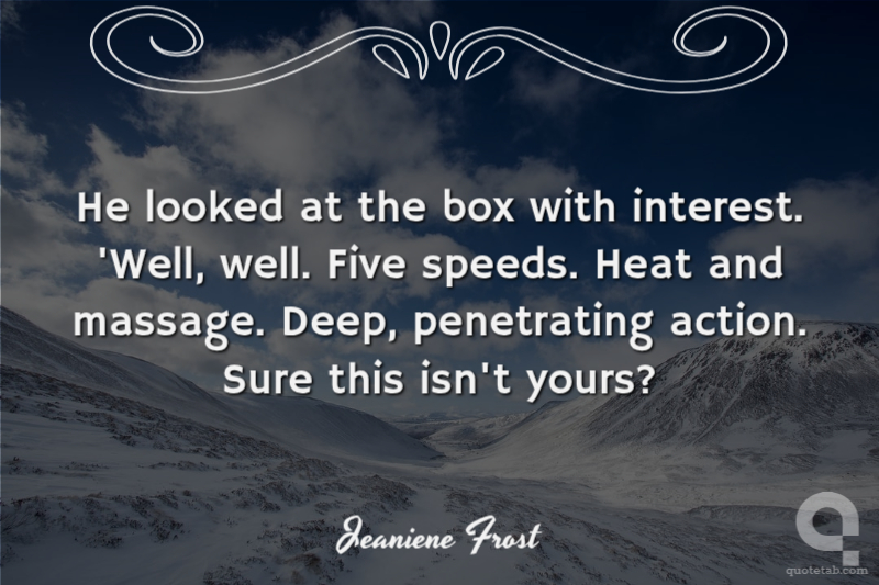 He looked at the box with interest. 'Well, well. Five speeds. Heat and massage. Deep, penetrating action. Sure this isn't yours? Jeaniene Frost