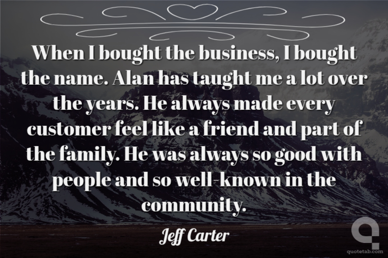 When I bought the business, I bought the name. Alan has taught me a lot over the years. He always made every customer feel like a friend and part of the family. He was always so good with people and so well-known in the community. Jeff Carter