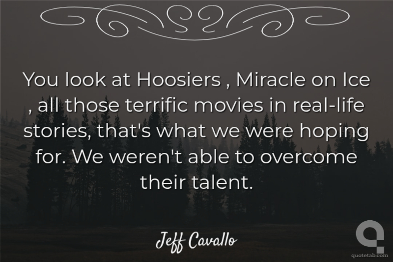 You look at Hoosiers , Miracle on Ice , all those terrific movies in real-life stories, that's what we were hoping for. We weren't able to overcome their talent. Jeff Cavallo
