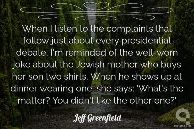 When I listen to the complaints that follow just about every presidential debate, I'm reminded of the well-worn joke about the Jewish mother who buys her son two shirts. When he shows up at dinner wearing one, she says: 'What's the matter? You didn't like the other one?' Jeff Greenfield