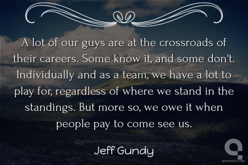A lot of our guys are at the crossroads of their careers. Some know it, and some don't. Individually and as a team, we have a lot to play for, regardless of where we stand in the standings. But more so, we owe it when people pay to come see us. Jeff Gundy