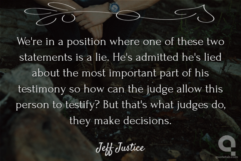 We're in a position where one of these two statements is a lie. He's admitted he's lied about the most important part of his testimony so how can the judge allow this person to testify? But that's what judges do, they make decisions. Jeff Justice