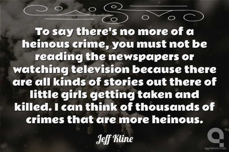 To say there's no more of a heinous crime, you must not be reading the newspapers or watching television because there are all kinds of stories out there of little girls getting taken and killed. I can think of thousands of crimes that are more heinous. Jeff Kline