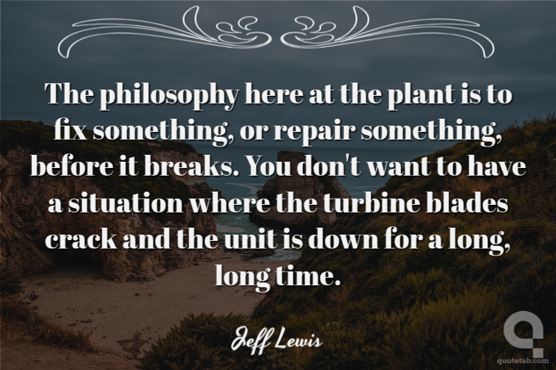 The philosophy here at the plant is to fix something, or repair something, before it breaks. You don't want to have a situation where the turbine blades crack and the unit is down for a long, long time. Jeff Lewis