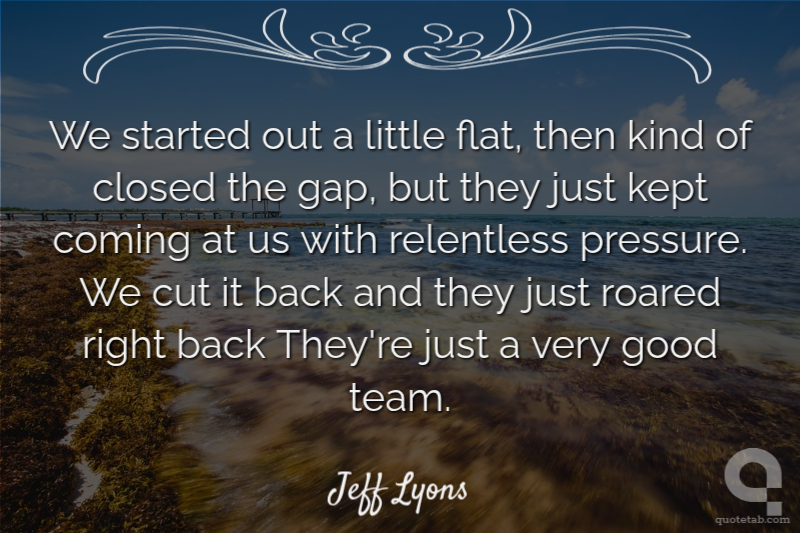 We started out a little flat, then kind of closed the gap, but they just kept coming at us with relentless pressure. We cut it back and they just roared right back They're just a very good team. Jeff Lyons