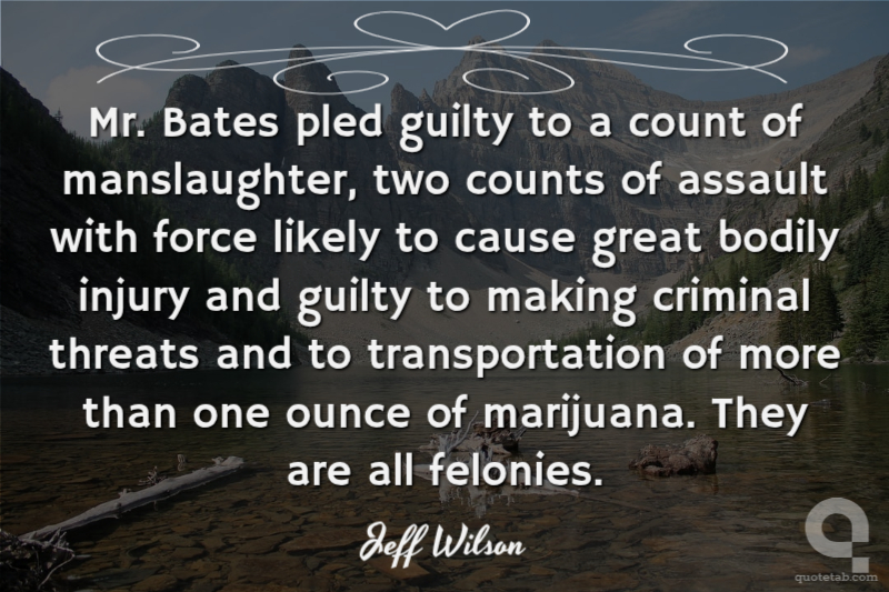Mr. Bates pled guilty to a count of manslaughter, two counts of assault with force likely to cause great bodily injury and guilty to making criminal threats and to transportation of more than one ounce of marijuana. They are all felonies. Jeff Wilson