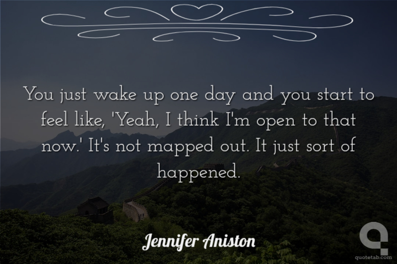 You just wake up one day and you start to feel like, 'Yeah, I think I'm open to that now.' It's not mapped out. It just sort of happened. Jennifer Aniston
