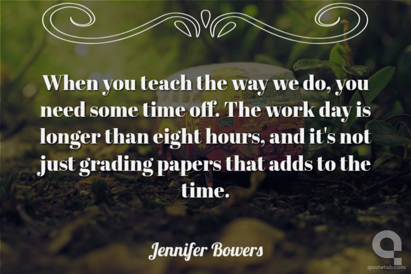 When you teach the way we do, you need some time off. The work day is longer than eight hours, and it's not just grading papers that adds to the time. Jennifer Bowers