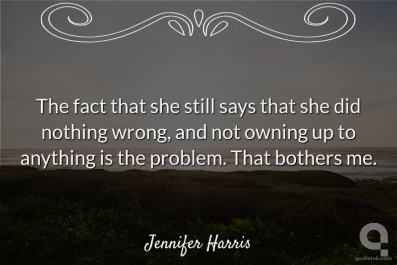 The fact that she still says that she did nothing wrong, and not owning up to anything is the problem. That bothers me. Jennifer Harris