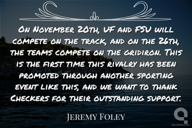 On November 20th, UF and FSU will compete on the track, and on the 26th, the teams compete on the gridiron. This is the first time this rivalry has been promoted through another sporting event like this, and we want to thank Checkers for their outstanding support. Jeremy Foley