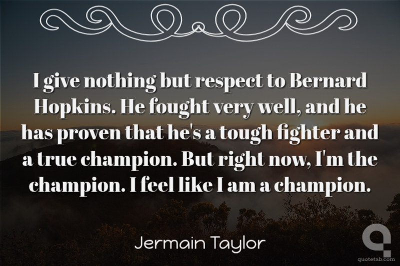 I give nothing but respect to Bernard Hopkins. He fought very well, and he has proven that he's a tough fighter and a true champion. But right now, I'm the champion. I feel like I am a champion. Jermain Taylor