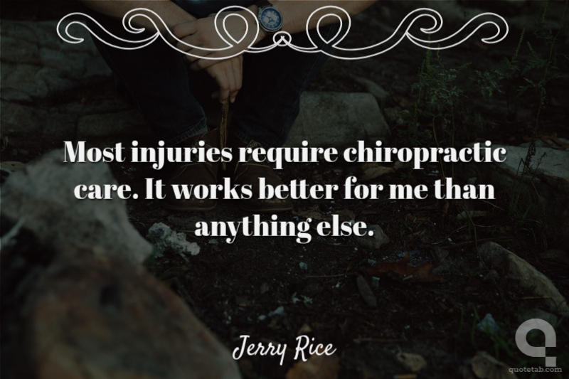 Most injuries require chiropractic care. It works better for me than anything else. Jerry Rice