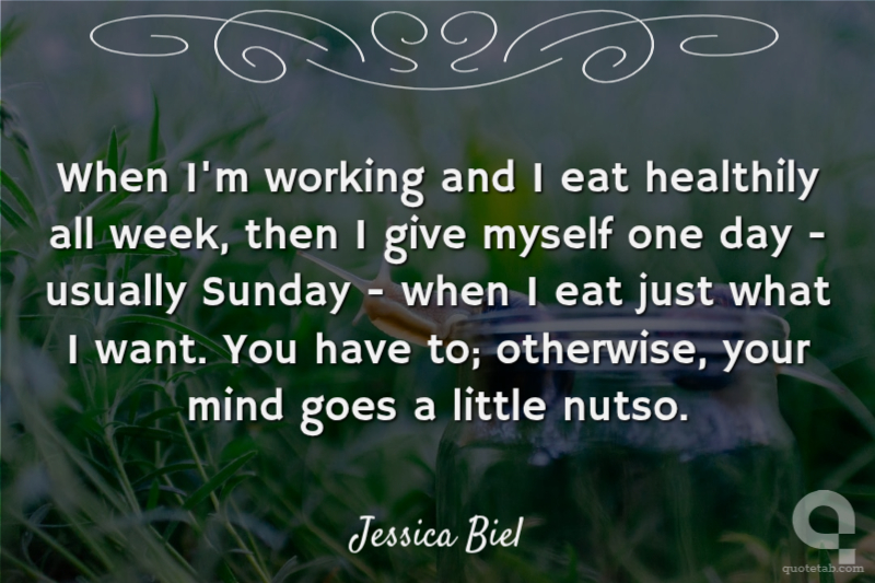 When I'm working and I eat healthily all week, then I give myself one day - usually Sunday - when I eat just what I want. You have to; otherwise, your mind goes a little nutso. Jessica Biel