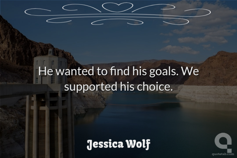 He wanted to find his goals. We supported his choice. Jessica Wolf