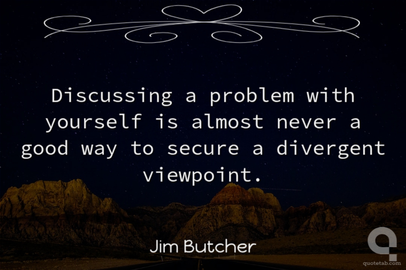 Discussing a problem with yourself is almost never a good way to secure a divergent viewpoint. Jim Butcher