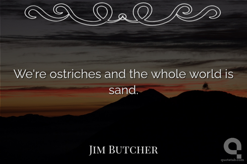 We're ostriches and the whole world is sand. Jim Butcher