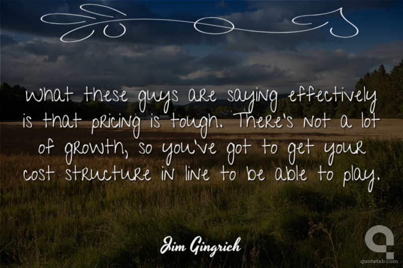 What these guys are saying effectively is that pricing is tough. There's not a lot of growth, so you've got to get your cost structure in line to be able to play. Jim Gingrich