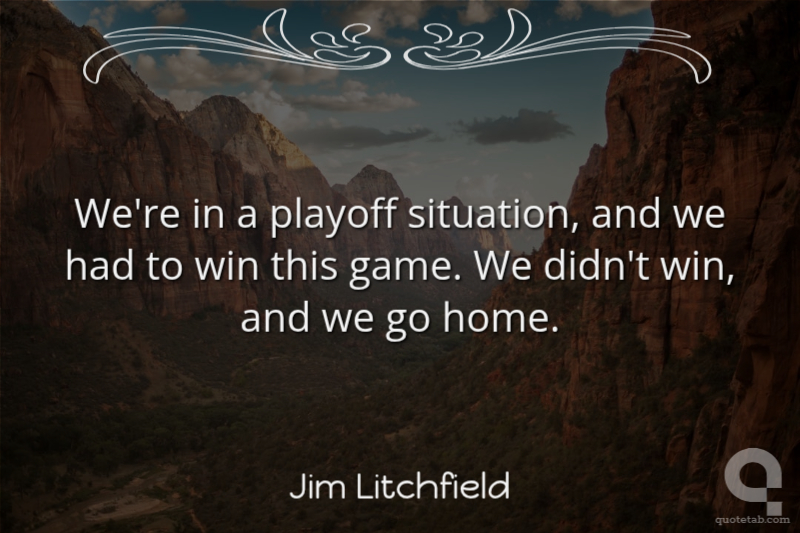 We're in a playoff situation, and we had to win this game. We didn't win, and we go home. Jim Litchfield