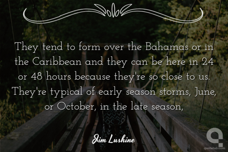 They tend to form over the Bahamas or in the Caribbean and they can be here in 24 or 48 hours because they're so close to us. They're typical of early season storms, June, or October, in the late season, Jim Lushine