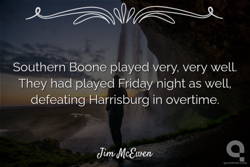 Southern Boone played very, very well. They had played Friday night as well, defeating Harrisburg in overtime. Jim McEwen