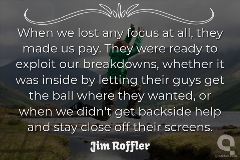When we lost any focus at all, they made us pay. They were ready to exploit our breakdowns, whether it was inside by letting their guys get the ball where they wanted, or when we didn't get backside help and stay close off their screens. Jim Roffler