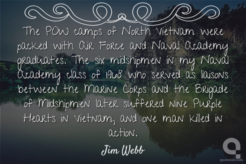 The POW camps of North Vietnam were packed with Air Force and Naval Academy graduates. The six midshipmen in my Naval Academy class of 1968 who served as liaisons between the Marine Corps and the Brigade of Midshipmen later suffered nine Purple Hearts in Vietnam, and one man killed in action. Jim Webb