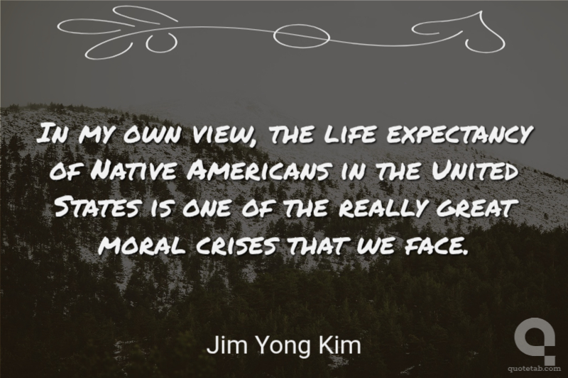 In my own view, the life expectancy of Native Americans in the United States is one of the really great moral crises that we face. Jim Yong Kim