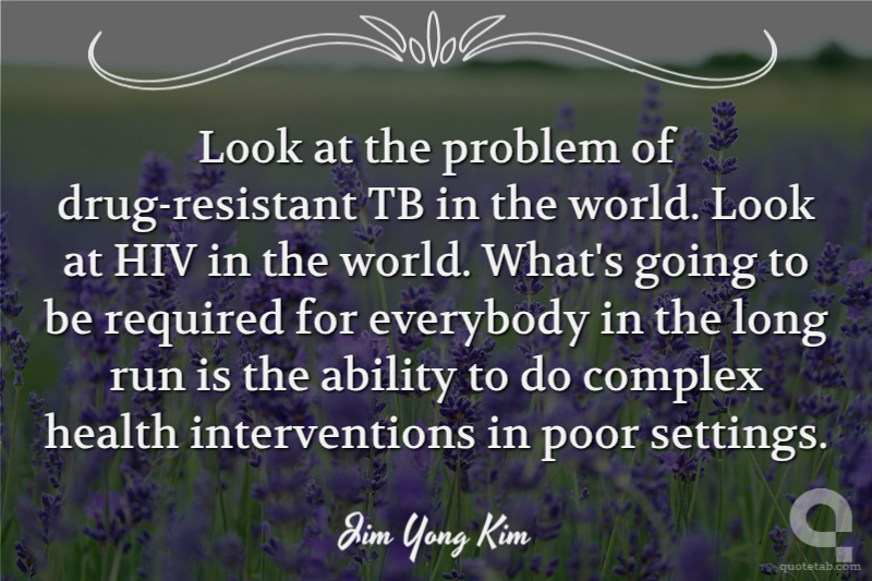 Look at the problem of drug-resistant TB in the world. Look at HIV in the world. What's going to be required for everybody in the long run is the ability to do complex health interventions in poor settings. Jim Yong Kim