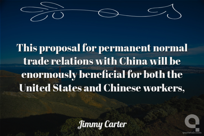 This proposal for permanent normal trade relations with China will be enormously beneficial for both the United States and Chinese workers, Jimmy Carter
