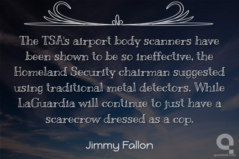 The TSA's airport body scanners have been shown to be so ineffective, the Homeland Security chairman suggested using traditional metal detectors. While LaGuardia will continue to just have a scarecrow dressed as a cop. Jimmy Fallon
