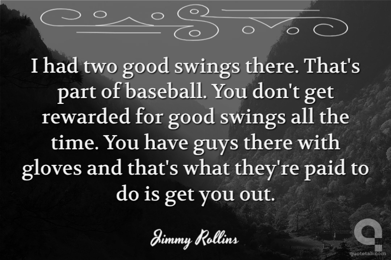 I had two good swings there. That's part of baseball. You don't get rewarded for good swings all the time. You have guys there with gloves and that's what they're paid to do is get you out. Jimmy Rollins
