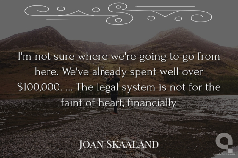 I'm not sure where we're going to go from here. We've already spent well over $100,000. ... The legal system is not for the faint of heart, financially. Joan Skaaland