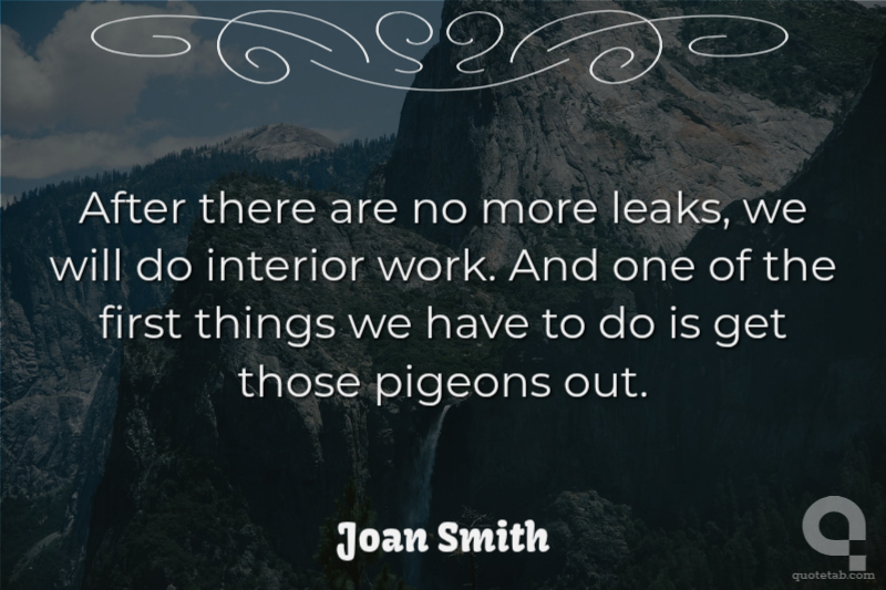 After there are no more leaks, we will do interior work. And one of the first things we have to do is get those pigeons out. Joan Smith