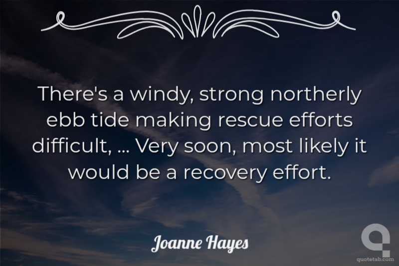 There's a windy, strong northerly ebb tide making rescue efforts difficult, ... Very soon, most likely it would be a recovery effort. Joanne Hayes