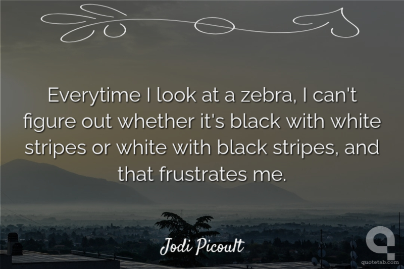 Everytime I look at a zebra, I can't figure out whether it's black with white stripes or white with black stripes, and that frustrates me. Jodi Picoult