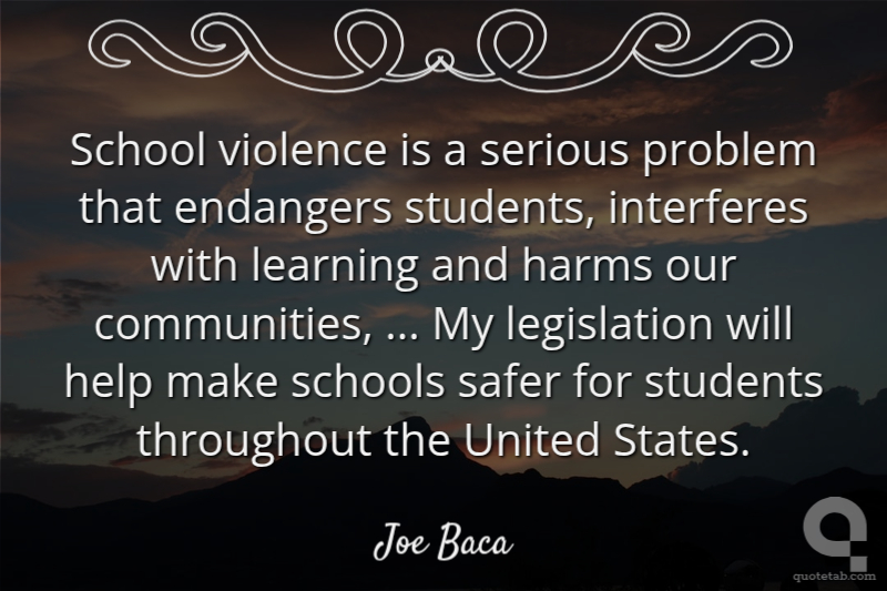 School violence is a serious problem that endangers students, interferes with learning and harms our communities, ... My legislation will help make schools safer for students throughout the United States. Joe Baca
