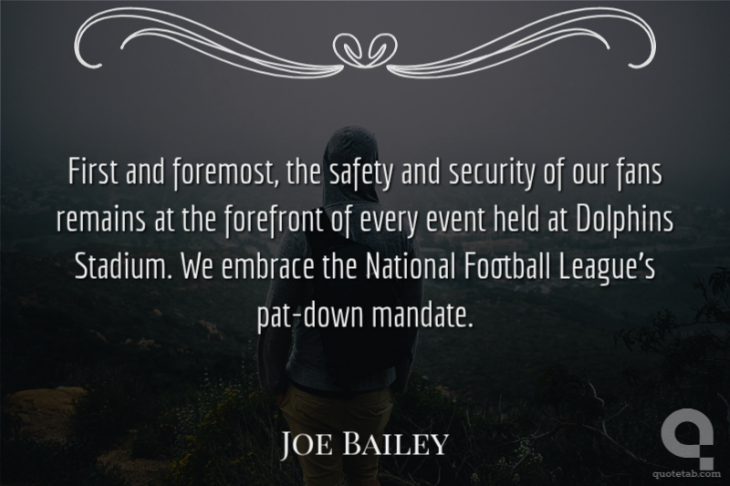 First and foremost, the safety and security of our fans remains at the forefront of every event held at Dolphins Stadium. We embrace the National Football League's pat-down mandate. Joe Bailey