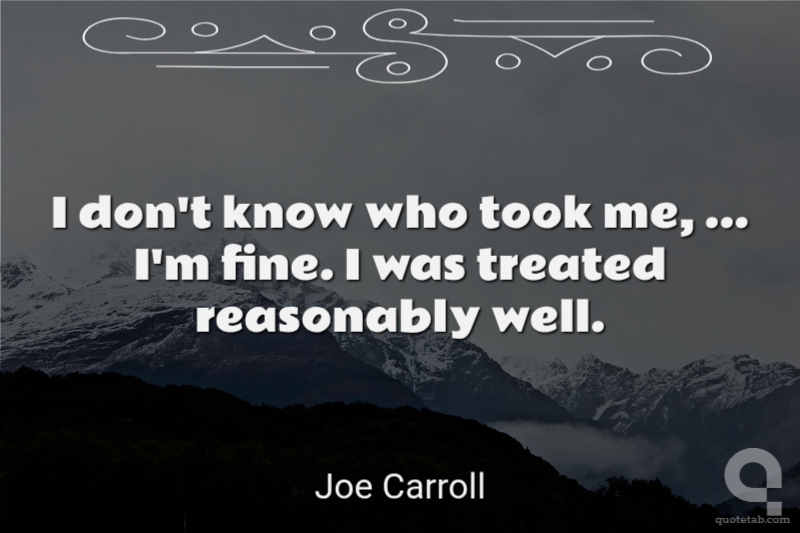 I don't know who took me, ... I'm fine. I was treated reasonably well. Joe Carroll