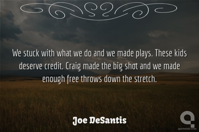 We stuck with what we do and we made plays. These kids deserve credit. Craig made the big shot and we made enough free throws down the stretch. Joe DeSantis