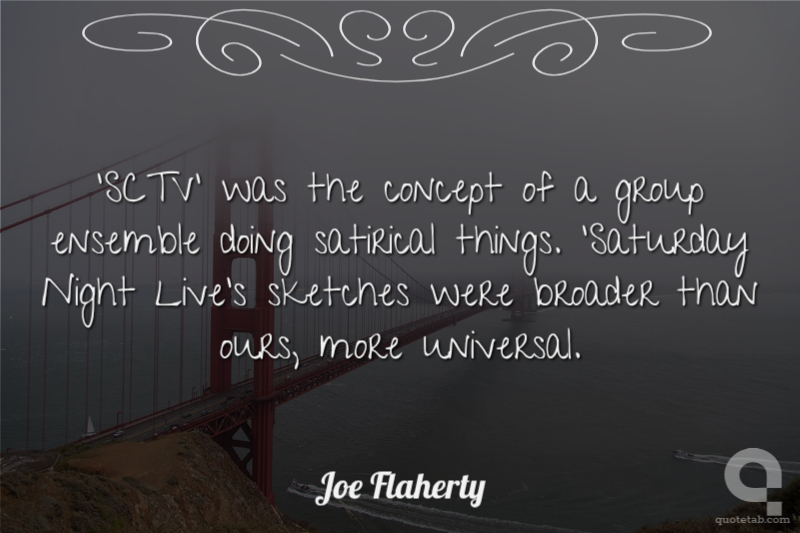 'SCTV' was the concept of a group ensemble doing satirical things. 'Saturday Night Live's sketches were broader than ours, more universal. Joe Flaherty