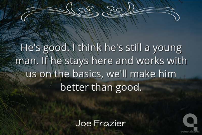 He's good. I think he's still a young man. If he stays here and works with us on the basics, we'll make him better than good. Joe Frazier