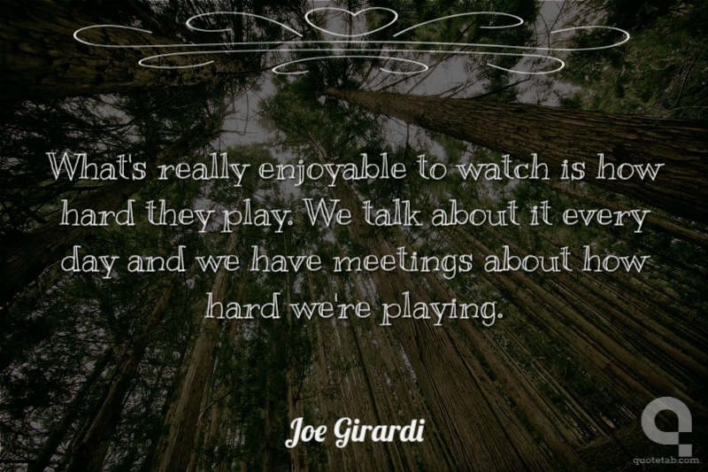 What's really enjoyable to watch is how hard they play. We talk about it every day and we have meetings about how hard we're playing. Joe Girardi