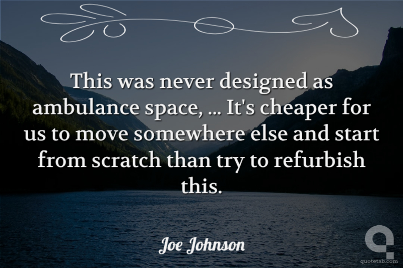 This was never designed as ambulance space, ... It's cheaper for us to move somewhere else and start from scratch than try to refurbish this. Joe Johnson