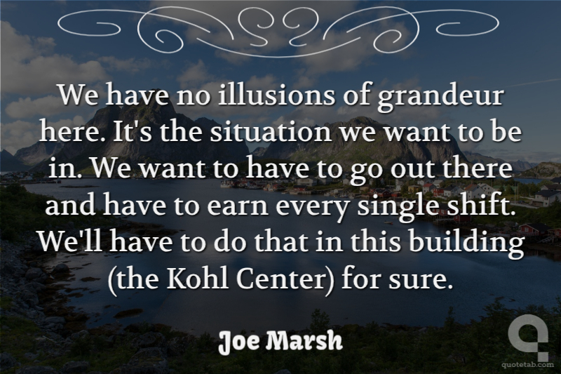 We have no illusions of grandeur here. It's the situation we want to be in. We want to have to go out there and have to earn every single shift. We'll have to do that in this building (the Kohl Center) for sure. Joe Marsh