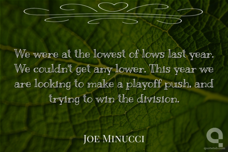 We were at the lowest of lows last year. We couldn't get any lower. This year we are looking to make a playoff push, and trying to win the division. Joe Minucci