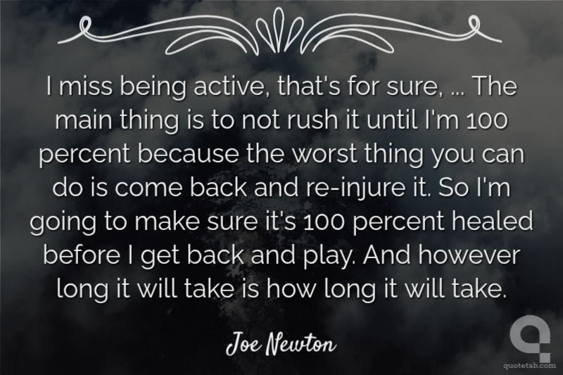 I miss being active, that's for sure, ... The main thing is to not rush it until I'm 100 percent because the worst thing you can do is come back and re-injure it. So I'm going to make sure it's 100 percent healed before I get back and play. And however long it will take is how long it will take. Joe Newton
