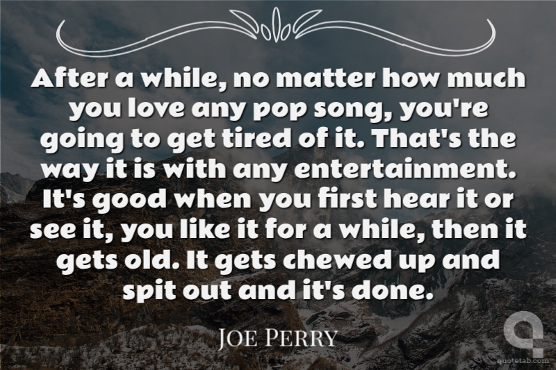 After a while, no matter how much you love any pop song, you're going to get tired of it. That's the way it is with any entertainment. It's good when you first hear it or see it, you like it for a while, then it gets old. It gets chewed up and spit out and it's done. Joe Perry