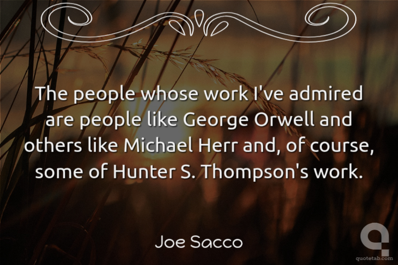 The people whose work I've admired are people like George Orwell and others like Michael Herr and, of course, some of Hunter S. Thompson's work. Joe Sacco